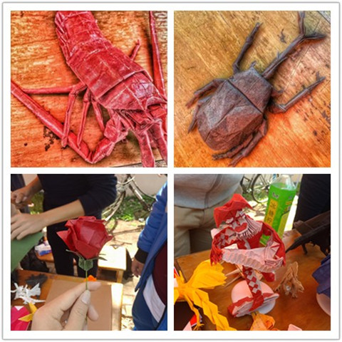 天公作美,艳阳高照。踏入工艺街,一个个花式折纸映入眼帘,有充满浪漫主义的玫瑰花,有富于想象力的恐龙,更有热心的“小师傅”现场进行指导。继续前行就是橡皮章雕刻了,雕刻是中国工艺中一项珍贵的艺术遗产,同学们在“小师傅”的指导下,运用现场的道具,用心做着属于自己的橡皮章。在旁边的摊位上,还可以制作花灯和风筝,参与的同学们积极发挥想象力,使得各式各样的花灯风筝遍布于校道,形成了一道亮丽的风景线。此外,“晴天娃娃”以它的制作简单又承载美好祝愿的特点,赢得了同学们的广泛欢迎。走了这么久是不是觉得饿了呢?切莫着急,我们还准备了好吃的水果糖葫芦。最后,在开心愉悦的气氛中,本次三院联合的工艺街活动圆满落幕。