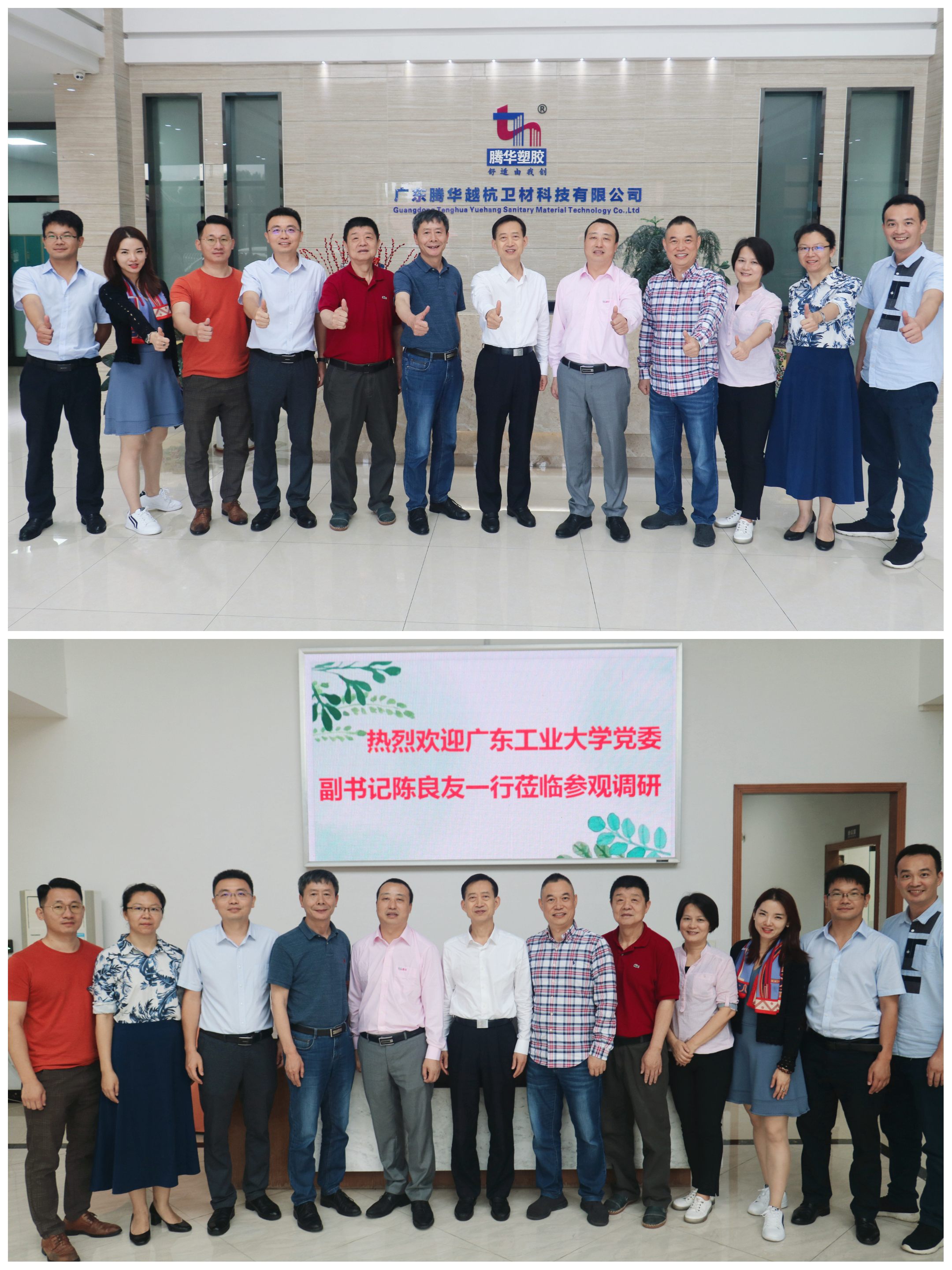 随后,陈良友一行实地走访了广东腾华越杭卫材科技有限公司和广东柏尔思新型建材有限公司,参观企业生产车间,详细了解企业经营情况和对人才的实际需求,并看望了在企业工作的毕业校友。