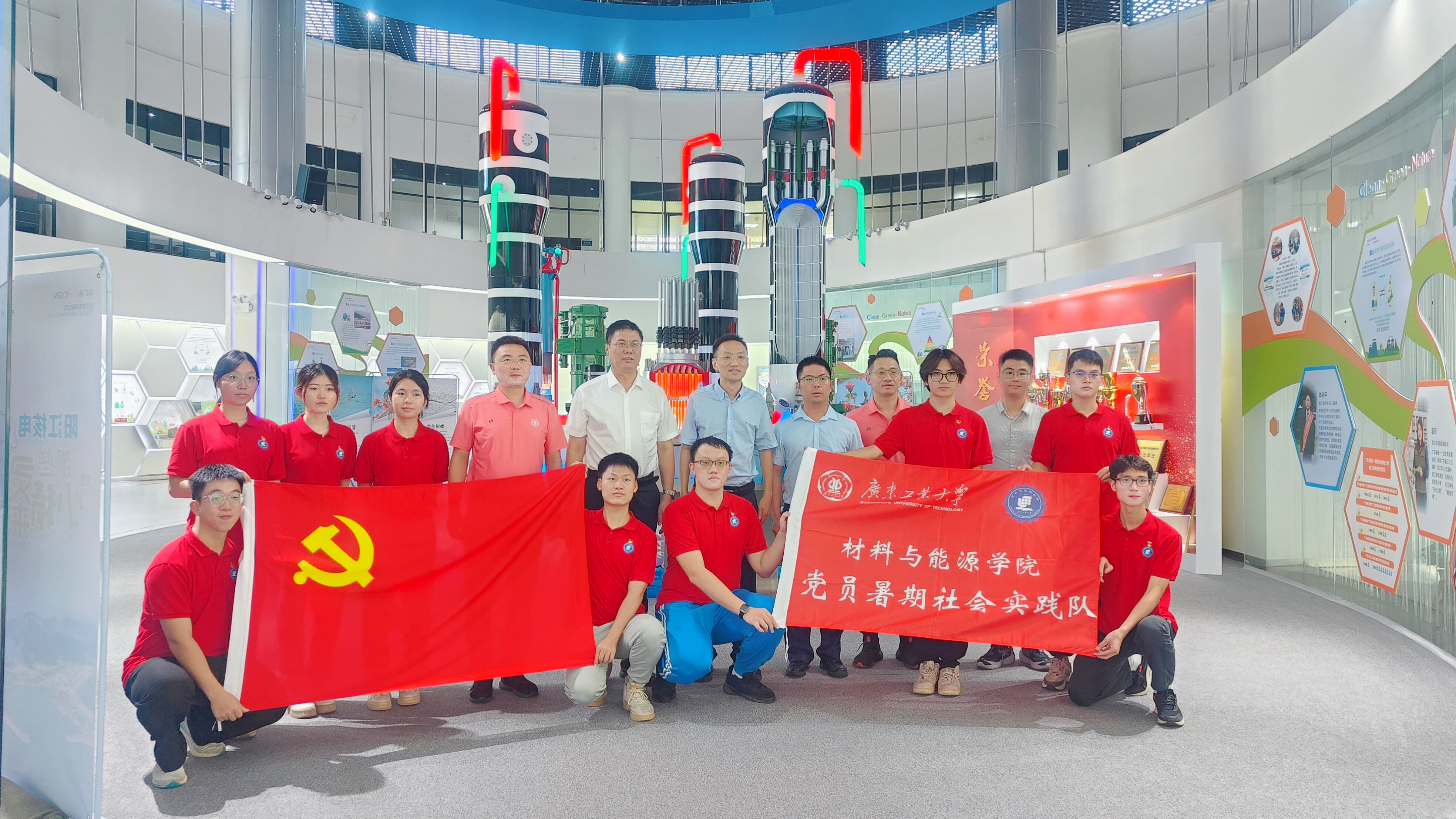 7月21日,学校教务处处长王振友、学院党委书记杨小帆、副书记汤猛、学院新能源科学与工程系主任蔡伟通与实践队一同参观阳江中广核爱国主义教育基地、珍珠湾海上风电场及阳江中节能,并与阳东区委书记李坤及企业代表进行了深入座谈交流,为进一步做好产学研合作奠定了良好基础。