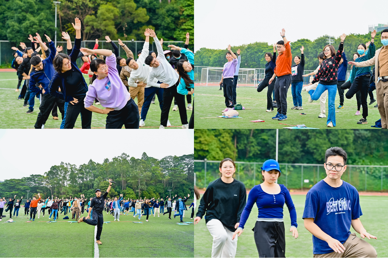 在《本草纲目》的配乐中,广大师生进行了热身活动。随后,趣味运动会正式开始。本次趣味运动会分为团队项目和个人项目。团队项目包括“不同凡响”“奋勇当先”“团体拔河”等。学院师生共分成了八支队伍,展开团队项目比拼。