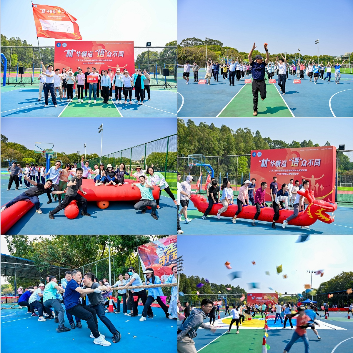 春意盎然,活力飞扬。为加强学院间师生的交流,增强教职工团队凝聚力,促进身心健康,3月25日,bw必威西汉姆联官方网站与外国语学院在大学城校区A区篮球场共同举办主题为“材”华横溢“语”众不同的教职工趣味运动会。两院领导及教职工代表100余人热情参与,共赴一场欢乐与协作的春日盛会。
