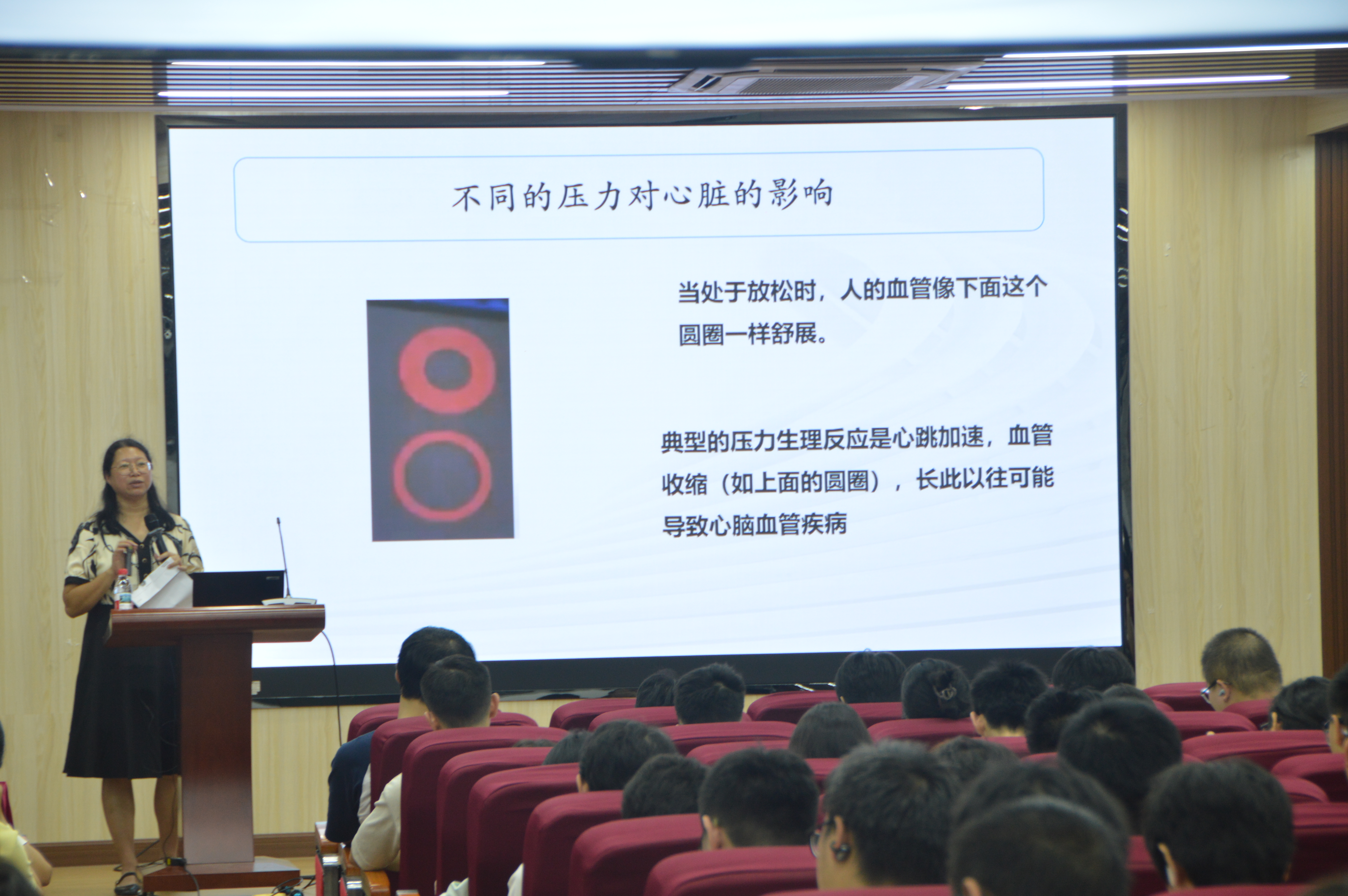 黄红清从压力的分类、压力的来源和信号识别、压力的两面性以及面对压力的平衡技巧进行讲解。她从医学角度揭示了压力状态对身体健康的影响,让师生认识到正确面对压力有助于产生积极情绪;同时通过自我关怀、平静身体、积极再定义和促进行动四个部分详细介绍了阻断压力恶性循环的技巧,帮助大家认识到真正的心理健康,不是永远阳光明媚,而是允许风雨,也懂得撑伞;不是消灭压力,而是学会与它共处。