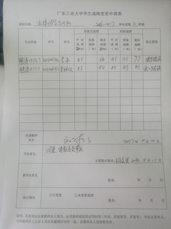 根据《广东工业大学理论课程考核管理办法》(广工大教字【2007】15号)文件的相关规定,现就bw必威西汉姆联官方网站开设的《流体力学泵与风机》和《锅炉原理课程设计》(2016-2017-2学期)学生成绩变更事项予以公示。 公示时间:2017年9月11日至2017年9月14日 如有异议,请署名书面反映到学院教务办公室,不接受匿名投诉。
