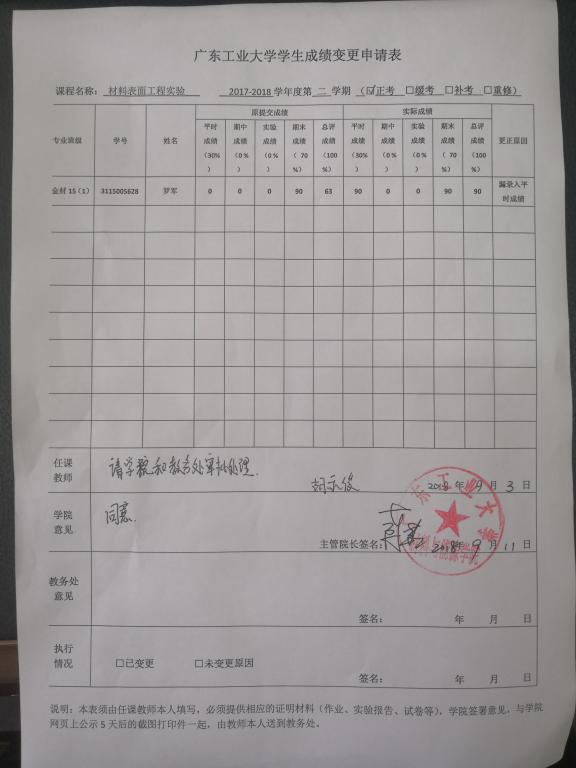 根据《广东工业大学理论课程考核管理办法》(广工大教字【2007】15号)文件的相关规定,现就bw必威西汉姆联官方网站开设的《材料表面工程实验》(2017-2018-2学期)学生成绩变更事项予以公示。 公示时间:2018年9月13日至2018年9月19日 如有异议,请署名书面反映到学院教务办公室,不接受匿名投诉。