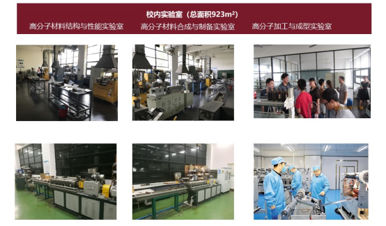 高分子材料与工程专业目前建有广东省重点实验室2个(广东省功能软凝聚态物质重点实验室、广东省储能材料与器件工程实验室),广东省工程技术中心1个(广东省高分子绿色制造与功能膜材料工程技术研究中心)。本专业现有高分子合成与制备实验室、高分子加工与成型实验室、高分子结构与性能三大专业实验室以及材料工程省级实验教学示范中心、材料成形制造与先进模具技术省级实验教学示范中心等组成的高分子材料与工程专业实验平台。本专业已与金发科技股份有限公司、星源材质科技股份有限公司、银宝山新科技股份有限公司、广东联塑科技实业有限公司、广州集泰化工股份有限公司等多家省内外知名企业建立了稳定的校外实习实践基地,并开展“3+1”校企联合培养班,为学生提供了良好的实习实践条件。