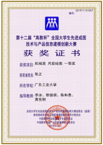 第十二届“高教杯”全国大学生先进成图技术与产品信息建模创新大赛一等奖
