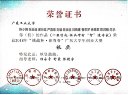 2018年“挑战杯·创青春”广东大学生创业大赛银奖