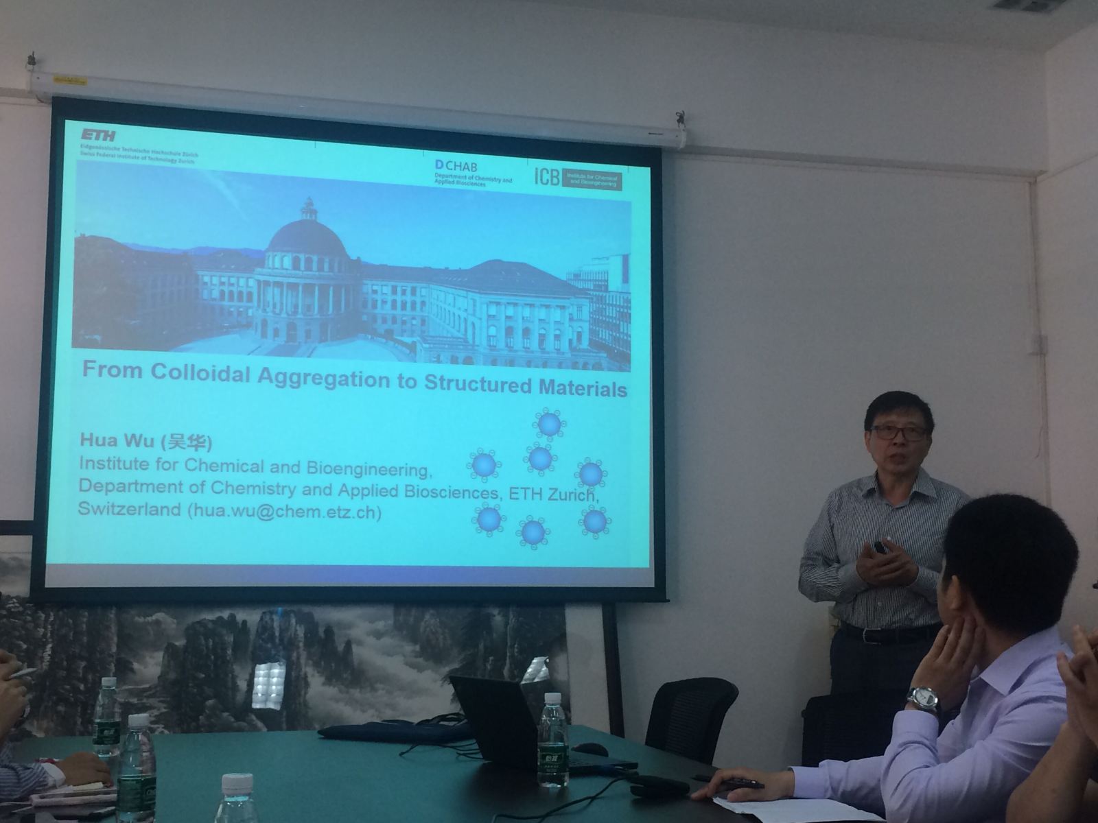 4月28日上午,瑞士联邦苏黎世理工学院(ETH)吴华教授应bw必威西汉姆联官方网站的邀请,在工学三号馆221室举办了一场“从聚合物胶体团聚到结构材料”的精彩报告,报告由陈颖教授主持,现场有来自华南理工大学化学与化工学院张心亚研究员和研究生,以及我校材能、轻化学院的老师和同学们。