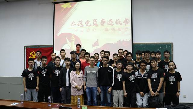 为发挥示范党员的先锋模范作用,强化2017级党章学习小组思想引领,了解入党流程,端正入党动机,持续推动“两学一做”学习教育,2017年11月30日,材料与能源学院学生党建工作委员会于教3-104召开2017年示范党员事迹报告会,陈三一、吴嘉锦和陈思旭三位高年级示范党员给党章学习小组成员作出了精彩分享,学生党建工作委员会副主任褚泽绵同学介绍了入党条件与入党流程。