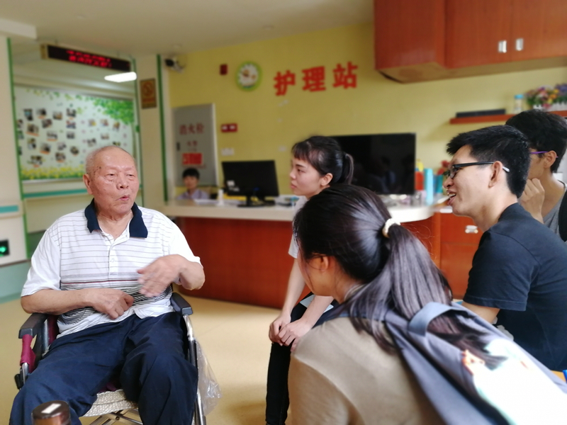 7月15日早上,在学院谭小琴老师的带领下实践队员们来到广州市孝慈轩养老服务中心,拜访并慰问了老党员刘爷爷和谭爷爷。