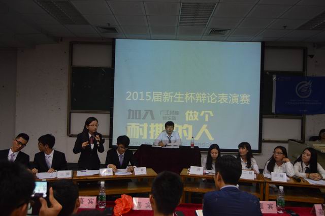 2015年9月18日晚7点,材料与能源学院第15届“新生杯”辩论赛表演赛暨新生杯辩论赛开幕式在教学楼三号大教室拉开了帷幕。本次表演赛由广工材能学院学生会学习部承办,并有幸邀请到广大文学院王泽青、广大外语学院曾绮婷、广中医外国语学院梁美君、广工信工学院胡洁瑜、广工机电学院陈志勇、以及广工材能学院学生会主席郑闻乐、古焜圳、卓成出席本次开幕式。
