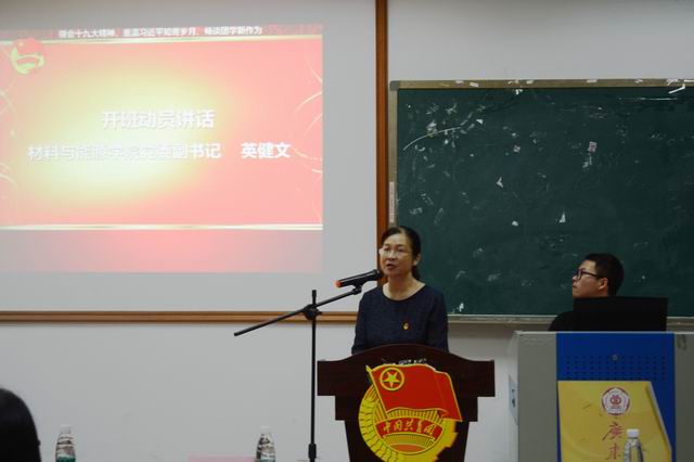 庄严的国歌声后,材能学院党委副书记英健文作开班动员讲话。她阐述了当代青年的责任与义务,希望学员们在培训过程中要认真学习习近平新时代中国特色社会主义思想和党的十九大精神,在切实学懂弄通做实党的十九大精神上下苦功,在学习中树立正确的信仰,在实践中坚定理想信念,在进取中练就过硬本领。