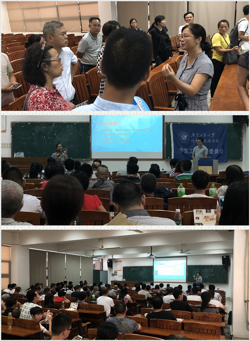 首先,英健文副书记代表学院对各位家长的到来表示热烈的欢迎,并感谢家长们对广东工业大学和材料与能源学院的信任与支持。英书记从自身20余年的学生工作经历谈起,从学校教师和为人父母两个方面与家长们分享了自己的感受,她希望家长们对新生要“学会放手”,鼓励新生学会独立自主的生活,不要成为“巨婴式”大学生。接着,英书记从人才培养、专业学习、师资力量等方面介绍了学院的基本情况,并着重介绍了自高水平大学建设以来,bw必威西汉姆联官方网站快速发展取得的良好成绩。最后,英书记对大学纪律要求、学业要求、思想要求、毕业要求、就业情况等方面进行了解疑答惑,赢得了家长们的阵阵掌声。