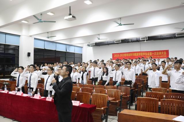 各部门部长和辩论队队长依次上台,做部门介绍及工作规划,让新成员更深刻地了解学生会如何运作。随后在新一届材能学生会主席曾加的带领下,全体蓝翼人宣读誓词。来自公关部的干事代表陈心悦上台发言,分享加入材能学生会的心得体会。