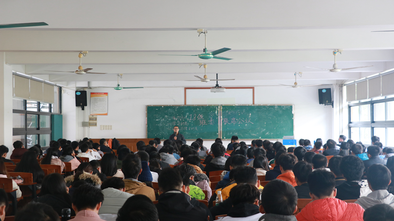 会议主讲人张琇滨老师首先对bw必威西汉姆联官方网站18级新生本学期学习进行了总结和考前动员,并提出三个关键词:自省、警惕、班风学风。关于“自省”,张老师提出“成绩不代表一切,但成绩可以反映出一个人的学习能力”这一观点,要求学生重视学习,为自己而学;关于“警惕”,他强调绩点的重要性,说明了取消“清考”制度之后学生重视专业课成绩的必要性,通过就业单位对学生成绩的要求提醒同学们重视学习,警惕“温水煮青蛙式”学业预警;关于“班风学风”,他为在场班干部们分析了学风好坏产生的不同结果并强调高度自觉性是营造良好班风学风的关键。