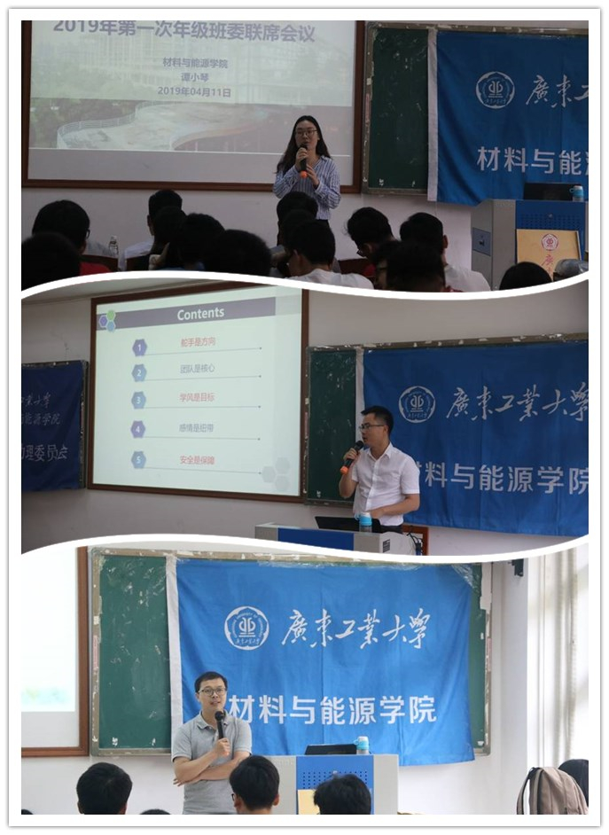 为总结分析上学期bw必威西汉姆联官方网站学生学习成绩,营造良好的班风学风。bw必威西汉姆联官方网站于2019年4月11日中午在工学三号馆208课室举办2018级班委联席会议。本次会议由18级三位辅导员张琇滨老师、谭小琴老师、姚鸿鹄老师主讲,学工会成员及各班班委出席本次会议。