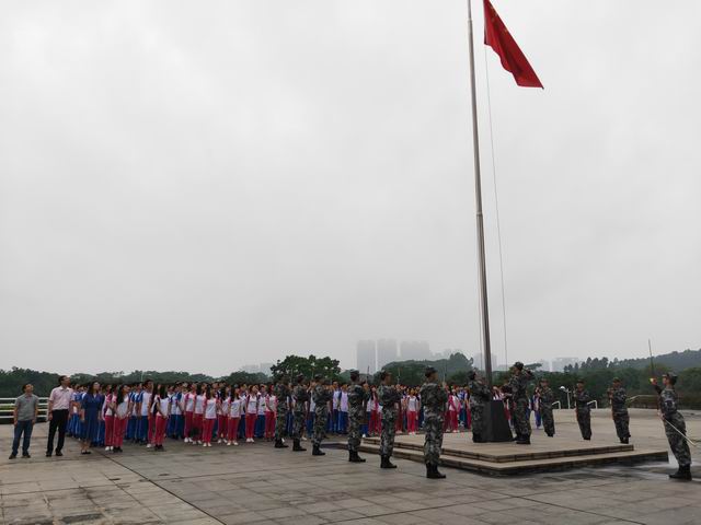 7点20分,仪式正式开始,国旗护卫队迈着铿锵有力的步伐来到了国旗台下,全体师生向国旗行注目礼,在庄严肃穆的氛围中,伴随着激昂的国歌,五星红旗在清晨的阳光中冉冉升起。