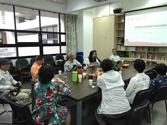 11月9日上午,步入古稀之年的材料与能源学院1977级合金、钢铁专业的校友相约从国内外“回家”。营造温馨氛围,欢迎校友“回家”。学院学生工作办公室细致做好接待服务工作。在工学三号馆215会议室,运用精美的PPT图片,辅导员林雨岚老师和学院李瑜煜老师代表学院向校友们介绍了学校的基本情况和学院近期的发展情况,校友们一起深情回顾了校园刻苦学习的点滴,分享了紧随时代步伐、立足岗位、艰苦奋斗、胸怀祖国的人生感悟,衷心祝愿母校在未来的发展中取得更加辉煌的成就。