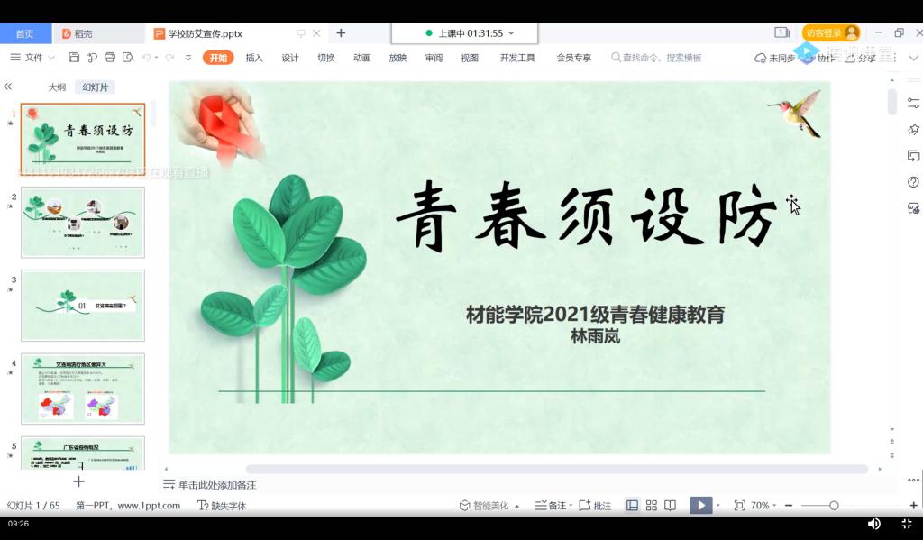 为增强大学生青春健康意识,普及青春健康知识,8月30日,bw必威西汉姆联官方网站在腾讯课堂开展2021级新生“青春需设防”青春健康教育讲座。此次讲座由bw必威西汉姆联官方网站青春健康指导老师林雨岚主讲。