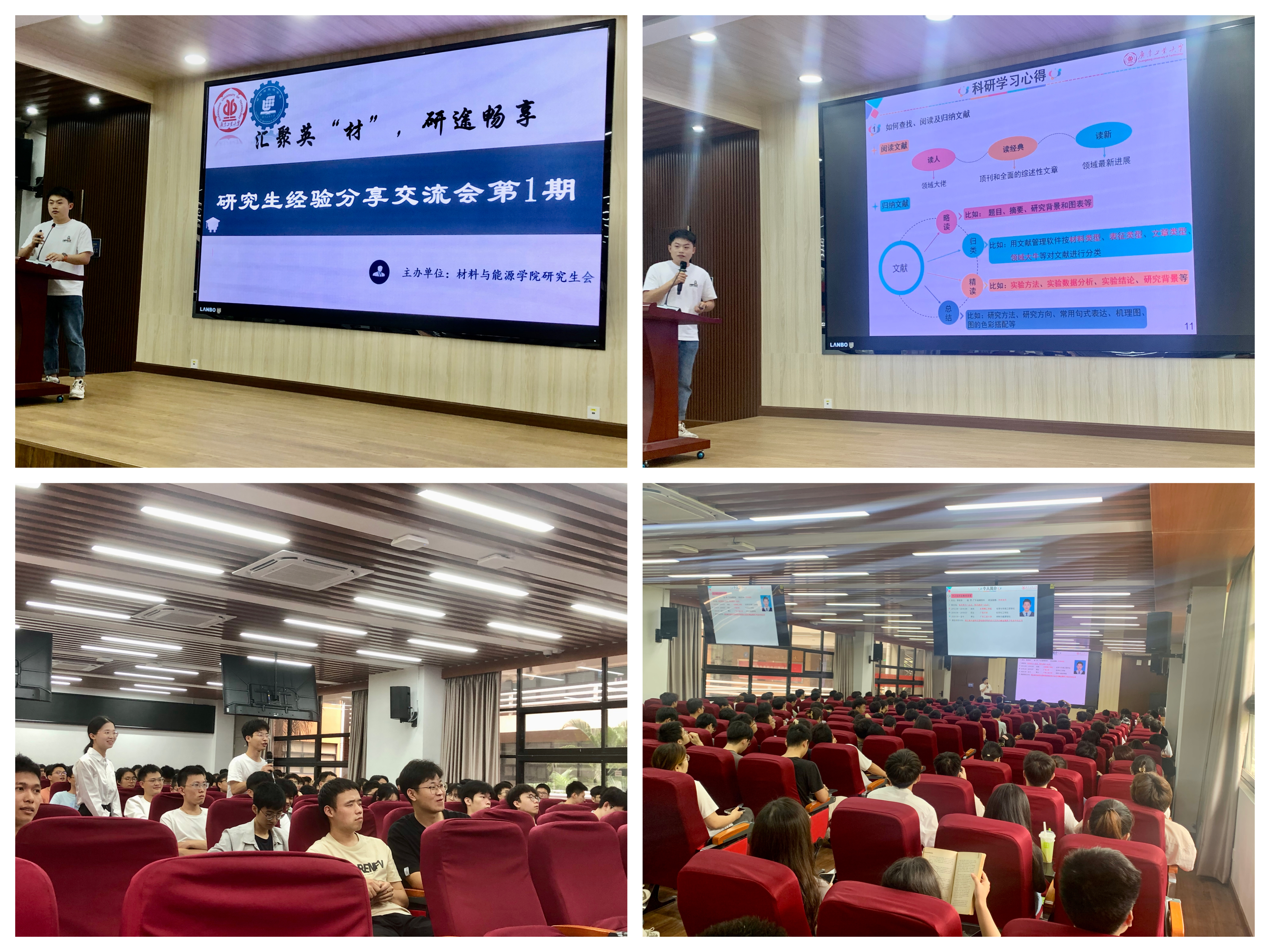 为充分发挥优秀研究生示范引领作用,搭建同学们之间的学习经验交流平台,促进同学们高质量地度过研究生生活,4月21日下午,由材料与能源学院研究生会举办的《汇聚英“材”,研途畅享——研究生经验分享交流会》第1期活动在工学三号馆208举行,本次活动邀请了优秀博士研究生李庆华进行分享交流,现场近200人参加。