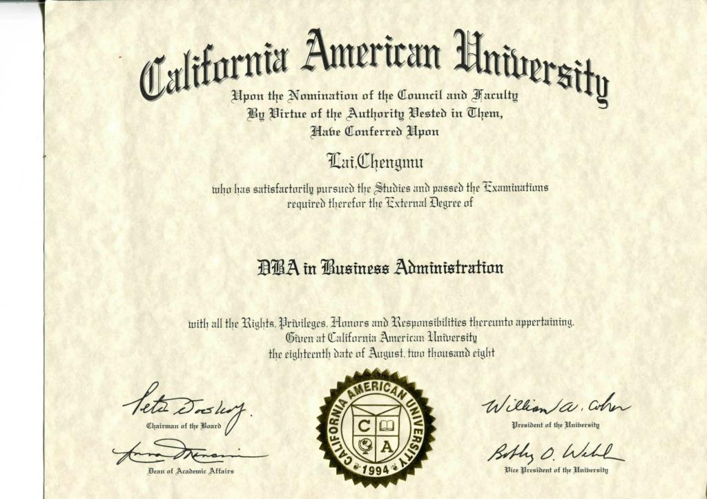 赖成幕先生加州美国大学学历证明