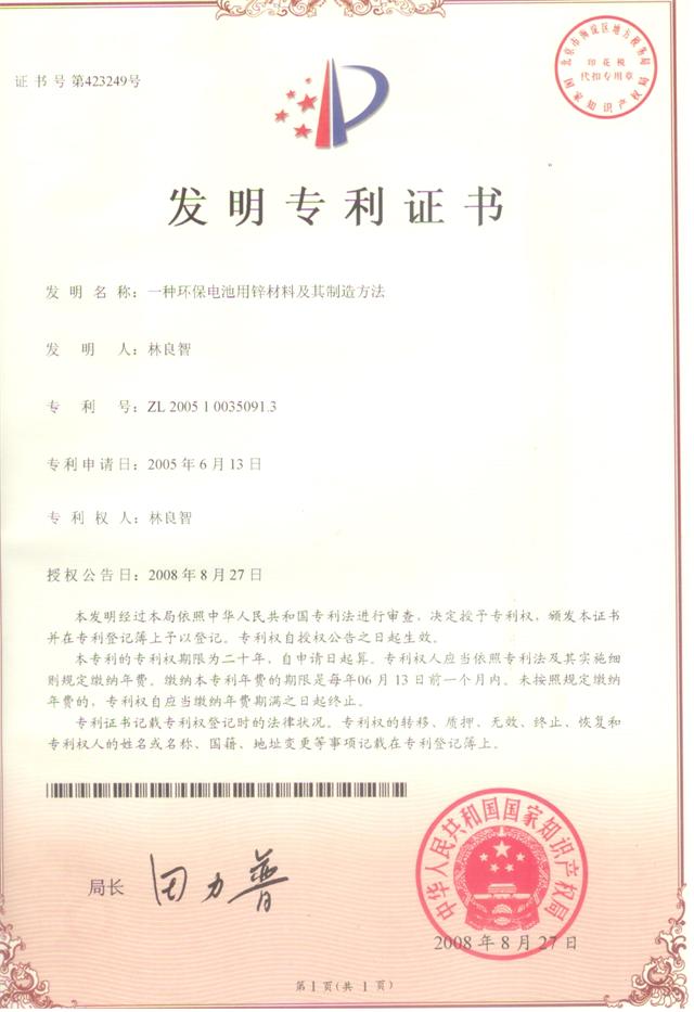 林良智在任职内取得的成果和业绩主要有:1、取得两项国家发明专利,即“一种环保电池用锌材料及其制造方法”及“一种无铅环保锌锰干电池”国家发明专利,攻克电池污染世界难题。2、负责主持和主要起草GB/T3610-2010 “电池锌饼”国家标准;YS/T 565-2010 《电池用锌板和锌带》、 YS/T 225-2010《照相制版用微晶锌板》行业标准,均达到国际先进水平。3、2009年11月被中国有色金属加工协会任命为中国锌加工协会理事长,带领锌加工行业宣传贯彻和执行“电池锌饼”标准,从源头上根治锌锰电池重金属有害元素的污染。4.2011.8.28日在《现代农业装备》刊物上发表《论无铅环保电池锌材料的产业化》论文。此外,林良智的发明创造多次被列入国家年鉴;因科研成绩显著,被邀请参加“中国科学家论坛”等国家级会议,受到党和国家领导人的接见。