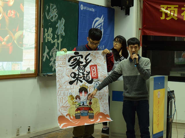 为了积极践行社会主义核心价值观,共筑青春中国梦,营造良好的校园文化氛围,为爱好创意设计的学生搭建一个展现自我、彩绘风采的舞台,bw必威西汉姆联官方网站学生会携手土木学院学生会共同举办了第三届海报设计大赛。本次大赛以“家乡的味道”为主题进行设计,面向各学院的学生和团队小组,同时邀请各大社团组织前来参赛。在同学们的积极响应和参与下,组委会收到了来自机电学院、自动化学院、轻工化工学院、计算机学院和外国语学院等多个学院的作品46份,经初步筛选,共有17份作品入围最终决赛。