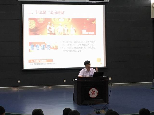 苏书记的辅导报告围绕《法治视野下的党内法规建设》主题,强调“两学一做”系列学习教育活动的重要性,他首先为大家解读了有关党章、准则、条例、规则、规定、办法、细则等系列的范畴,结合自己学习党章党纪的实际,着重从“党内法规”、“法治建设”、“法高于纪”、“纪严于法”、“廉洁政治”、“依规治党”六个方面向师生党员讲述了我党思想建党与制度建党相结合的党建理论;阐明了党风廉政建设、反腐倡廉、以改革创新补齐制度短板的重要性和战略意义。苏书记的辅导报告内容丰富,深入浅出,生动具体,为广大师生党员更好地学习领会党章党纪提供了坚实有力的理论基础。
