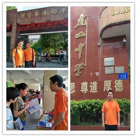 6月25-28日,我校赴梅州招生宣传工作组派出材料与能源学院党委英健文副书记为组长,由建筑与城规学院林垚广、管理学院刘苑辉、金属材料系曾国勋、能源与动力工程系宋孟杰、辅导员舒蒙、张琇滨与车队袁章师傅组成8人的强大阵容,分组先后走访了梅州东山中学、兴宁一中、梅县高级中学、曾宪梓中学、大埔虎山中学、五华水寨中学、蕉岭中学、平远中学、丰顺中学、兴宁沐彬中学共10所与我校签订优质生源基地或有长期合作的重点中学,并参加了28号在嘉应学院举办的梅州市2016年高校招生咨询会,通过校园咨询、班级宣讲、现场讲解、派发资料等方式为高考学生答疑解惑,受到了广大梅州学子的热捧。 工作组历时四天,行程超过1500公里,足迹遍及梅州地区两区一市五县,克服了天气酷暑和阵雨的重重困难,圆满完成了今年在梅州的招生宣传任务。在东山中学和梅县高级中学,梅州籍2010届文法学院的李真珍作为优秀校友代表,参与了工作组的咨询活动,她的现身说法起到了非常明显的宣传效应;在丰顺中学,徐校长带我们到了两个重点班的教室直接进行宣讲;在梅州市的咨询现场,虽然天气极端不稳定,先是暴晒再是阵雨,我们学校的摊位还是被学生和家长里三层外三层地围得水泄不通,梅州是革命老区,因此关于贫困地区专项计划这方面的咨询特别火爆,工作组每位老师都是汗流浃背全身湿透声音嘶哑,带去的资料也很快被抢光,梅州学子对我校的认同可见一斑。 这次招生宣传活动,我们分别接受了梅州、梅县、大埔、丰顺等电视台的采访,为在梅州地区宣传我校起到了积极的作用。