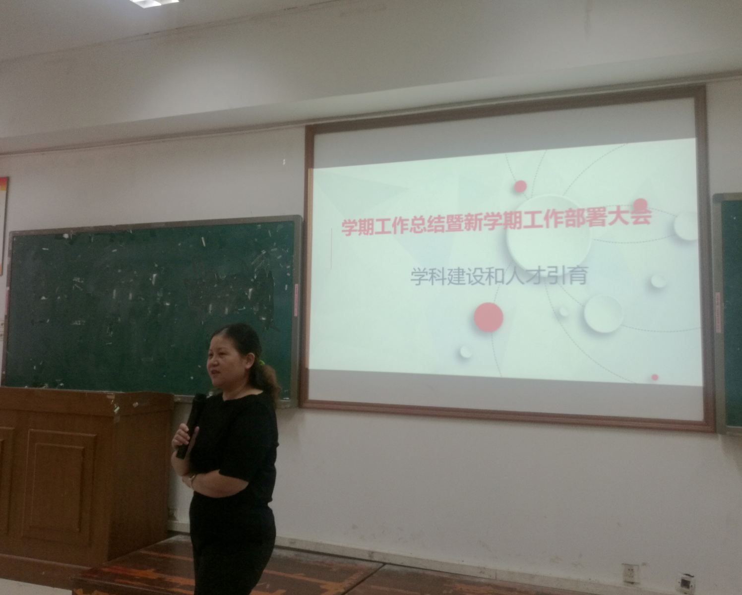 陈颖院长总结了上学期的学院工作情况,对新学期工作做了总体部署。陈院长指出,下一阶段人才工作重在整合人才资源和科研力量,逐步培育优势团队群,冲击国家级人才及重大科研项目;还要做好教师提升计划,鼓励海外研修,细化教师成果奖励,进一步完善学院师资队伍和人才梯队建设。