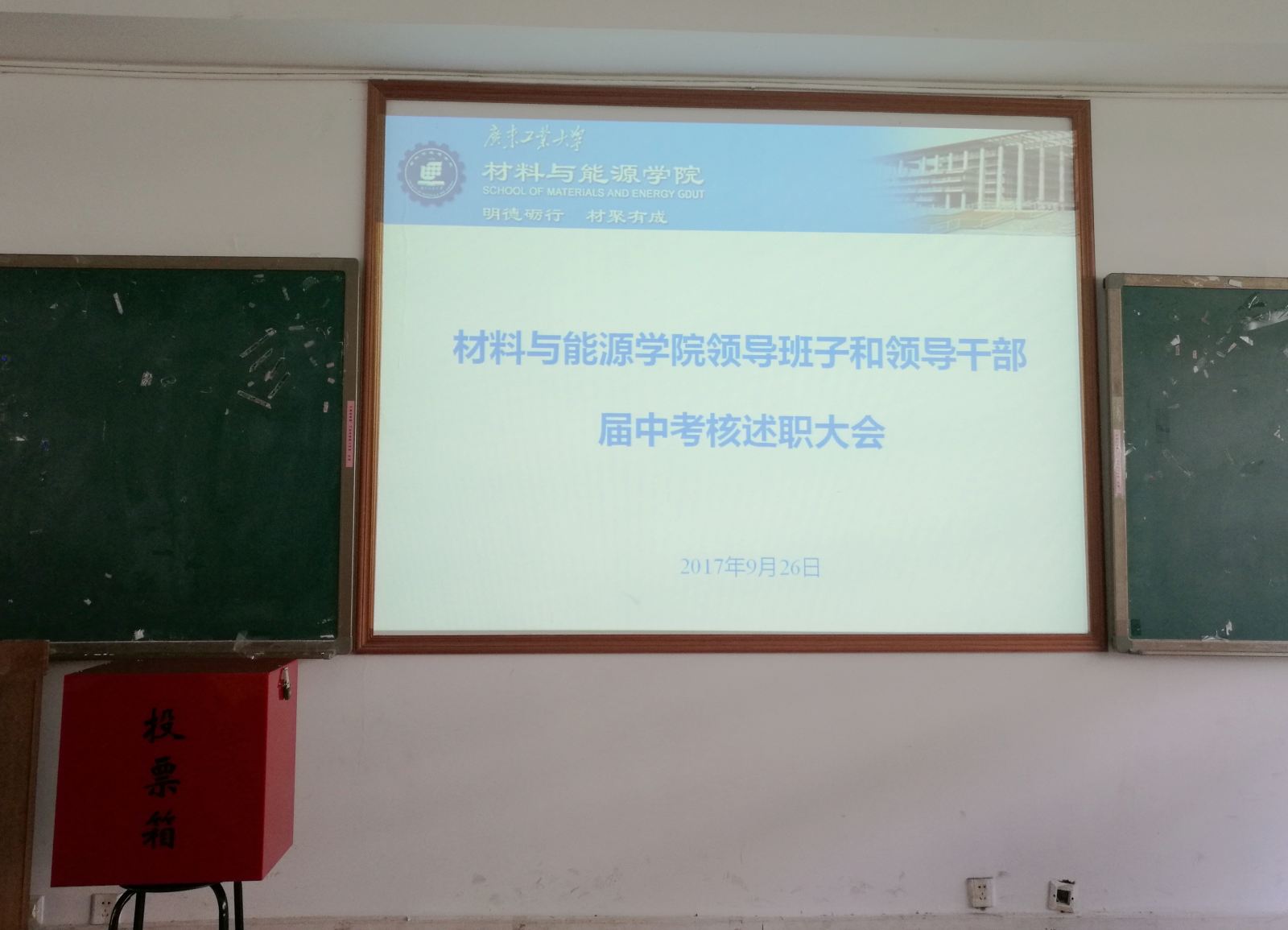 9月26日下午,材能学院在工学三号馆208室召开学院领导班子和领导干部届中考核述职大会。校党委组织部周琼科长和党校办公室副主任董尚朝到会考察。大会由学院党委林军书记主持,学院全体教职工参加了会议。