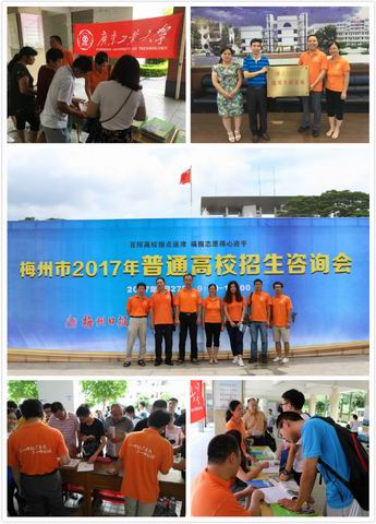 6月24-27日,我校赴梅州招生宣传工作组由材料与能源学院党委英健文副书记带队,由机电工程学院吴黎明教授、外国语学院陈国崇副教授、管理学院刘苑辉副教授、新能源材料与器件系王文广副教授、实验中心胡俊祺老师、辅导员林雨岚老师与车队袁章师傅组成8人的强大阵容,分组先后走访了梅州东山中学、兴宁一中、丰顺中学、蕉岭中学、梅县高级中学、曾宪梓中学、大埔虎山中学、五华水寨中学、平远中学、兴宁田家炳中学共10所与我校签订优质生源基地的学校,并参加了27号在嘉应学院举办的梅州市2017年高校招生咨询会,通过校园咨询、班级宣讲、现场讲解、派发资料等方式为高考学生答疑解惑,受到了广大梅州学子的热捧。 工作组历时四天,行程超过1600公里,足迹遍及梅州地区两区一市五县,克服了天气酷暑和阵雨的重重困难,圆满完成了今年在梅州的招生宣传任务。26号上午,我校代表与兴宁一中张远明校长共同签订了广东工业大学优质生源基地的协议书并合影留念。在东山中学和梅县高级中学,梅州籍材料与能源学院校友冯宏山作为优秀校友代表,参与了工作组的咨询活动,他的现身说法起到了非常明显的宣传效应;在梅州市的咨询现场,虽然天气炎热,骄阳似火,我们学校的摊位还是被学生和家长里三层外三层地围得水泄不通。梅州是革命老区,因此关于贫困地区地方专项计划这方面的咨询特别火爆,工作组每位老师都是汗流浃背全身湿透声音嘶哑,带去的资料也很快被抢光,梅州学子对我校的认同可见一斑。 这次招生宣传活动,bw必威西汉姆联官方网站还派出多位专业老师跟随兄弟学院开赴全省各地开展招生宣传工作:赵晨老师27-28日随政法学院到云浮进行招生咨询;陈粤老师25-27日随计算机学院到汕尾开展招生宣传;张艳梅老师23-25日随建筑与城市规划学院到汕头开展招生宣传。学院还通过印制宣传单张、学院网站、咨询电话等方式方法,共同为学校2017年的招生宣传工作出谋划策,贡献力量。