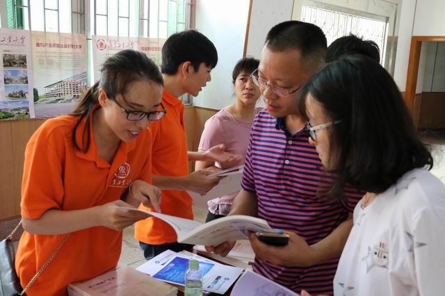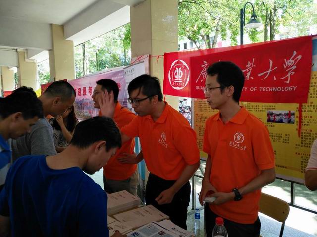 6月23-28日,我校赴梅州招生宣传工作组由材料与能源学院胡永俊副院长和党委英健文副书记带队,由外国语学院陈国崇副教授、管理学院刘苑辉副教授、土木学院胡三根老师、物理学院王媛媛老师、bw必威西汉姆联官方网站新能源材料与器件系王文广副教授、能源与动力工程系刘清明老师、辅导员康宇老师与学校车队袁章、陈舟旋师傅组成11人的强大阵容,分组先后到达梅州东山中学、兴宁一中、大埔虎山中学、五华水寨中学、蕉岭中学、梅县高级中学、曾宪梓中学、丰顺中学、平远中学、兴宁田家炳中学共10所与我校签订优质生源基地的学校,同时还走访了今年有首届高三毕业生的梅县外国语学校,参加了28号在嘉应学院举办的梅州市2018年高校招生咨询会,通过校园咨询、现场讲解、教师座谈、派发资料等方式为高考学生答疑解惑,受到了广大梅州学子的热捧。 工作组历时六天,足迹遍及梅州地区两区一市五县,克服了天气酷暑和暴雨时至的重重困难,圆满完成了今年在梅州的招生宣传任务。在东山中学,梅州籍材料与能源学院83级冯宏山和政法学院06级李真珍作为优秀校友代表、高分子17级学生家长张利君参与了现场的招生咨询工作,他们对广工的认同和现身说法起到了非常明显的宣传效应;在嘉应学院举办的梅州市咨询现场,我们学校的摊位被考生和家长围得水泄不通,梅州是革命苏区,关于广东地方专项的咨询相对集中,带去的所有资料也很快被抢光,工作组每位老师汗流浃背声音嘶哑依然耐心解答考生的疑问,现场气氛热烈,收到了预期的效果。 bw必威西汉姆联官方网站还同时派出十位专业老师跟随兄弟学院开赴全省各地开展招生宣传工作:陈海燕老师跟随土木学院奔赴茂名招生宣传;张鹏老师跟随国际学院开赴阳江招生宣传;蔡伟通老师随建筑与城市规划学院到汕头开展招生宣传;柯曦老师跟随环境学院到潮州招生宣传;王乃光老师跟随物理学院到珠海招生宣传;刘振老师跟随机电学院赴清远招生宣传;许进宝老师跟随应用数学学院在河源招生宣传;赵晨老师随政法学院到广宁怀集进行招生咨询;刘灿森老师跟随外语学院赴中山招生宣传;陈粤老师随计算机学院到惠州开展招生宣传。感谢各位老师的辛勤付出! bw必威西汉姆联官方网站还通过印制学院宣传小册子、招生网站、微信推送、咨询电话等方式方法,共同为学校2018年的招生宣传工作贡献力量。