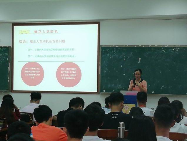 张绣瑸老师用自身从高中年代就为加入中国共产党而努力奋斗的经历,激励入党积极分子积极向党组织靠拢,警醒同学们要坚定理想信念。课堂上张老师指出具共产主义信念是入党的真正内涵,并引导同学们思考“为什么坚定理想信念”。明确理想信念是共产党员的根本,是思想的总开关。只有稳固理想信念不断地鞭策自我才能实现奋斗目标。然后,张老师讲述了黄大年教授、卢永根院士等优秀党员事迹,让入党积极分子向榜样学习。既然选择了学习如何成为党员就要坚定信念跟党走。接近尾声,张老师读了习近平总书记的一封信,深有感触,他说“当代青年骨子里要有魂,能够担负起实现中华民族伟大复兴历史使命和伟大梦想的责任。”最后,张老师通过习近平总书记当知青的经历,告诉大家如何做新时代的新青年,让大家在故事中受益良多。