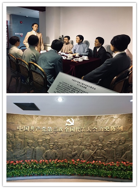随着解说员的介绍,党员们在中共三大纪念馆里浏览相关的历史资料,有文字、有图片、有文物、还有不同的影音片段。最突出的就是代表们开会的场景。代表们的表情栩栩如生,陈独秀正在激昂地讲话,毛泽东手握毛笔,正在做记录。党的三大根据马克思列宁主义的策略原则和共产国际的指示,结合中国革命的具体情况,充分发扬民主,在分析中国社会矛盾和明确中国革命性质的基础上,正确解决了建党初期党内在国共合作问题上存在的重大分歧,统一了全党的认识,正式确定了共产党员以个人身份加入国民党,与国民党进行党内合作的策略方针,使党能够团结一切可能联合的力量,共同完成反帝反封建的民主革命任务。