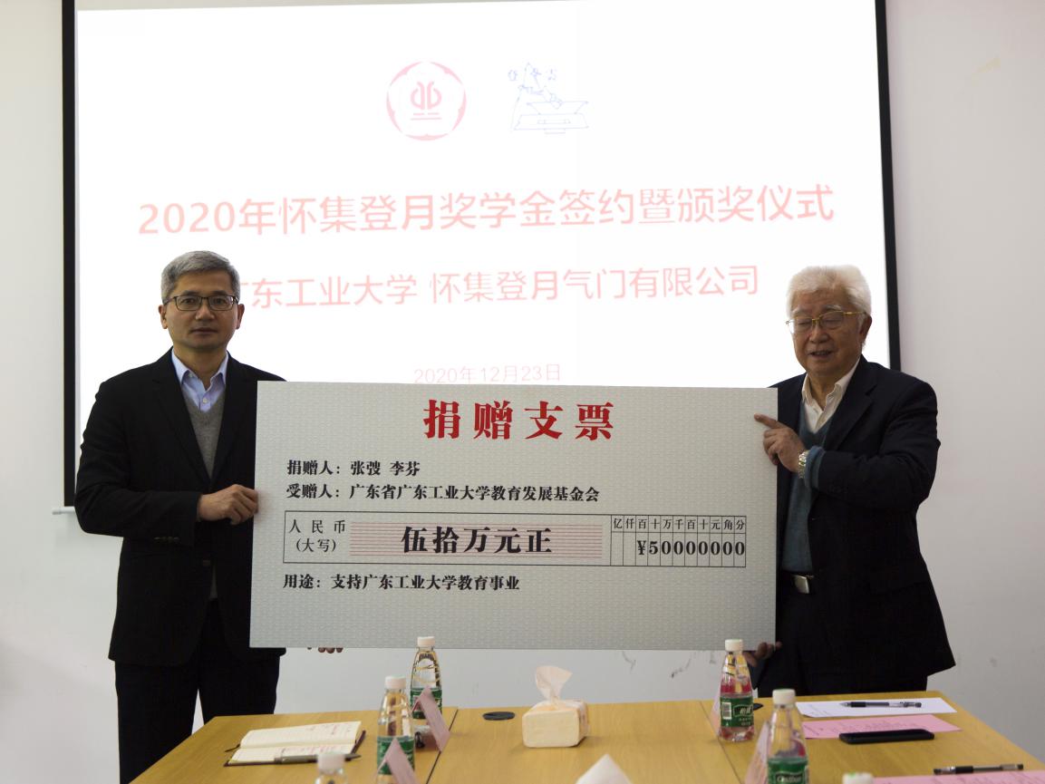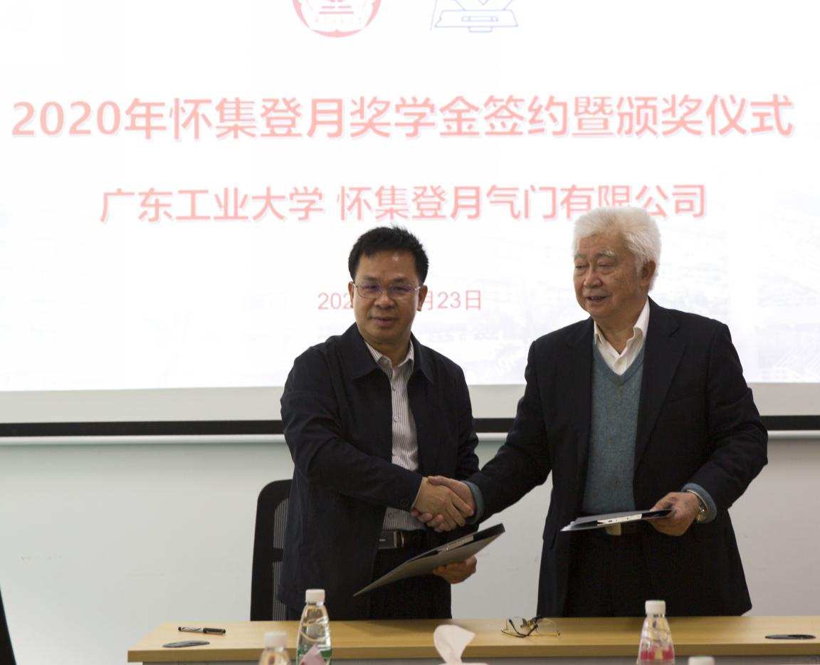 2020年12月23日上午,怀集登月气门奖学金签约暨颁奖仪式在广东工业大学大学城校区举行,怀集登云汽配股份有限公司原董事长张弢、技术中心副主任孙歌、工程师曾燕鹏一行莅临我校参加仪式。