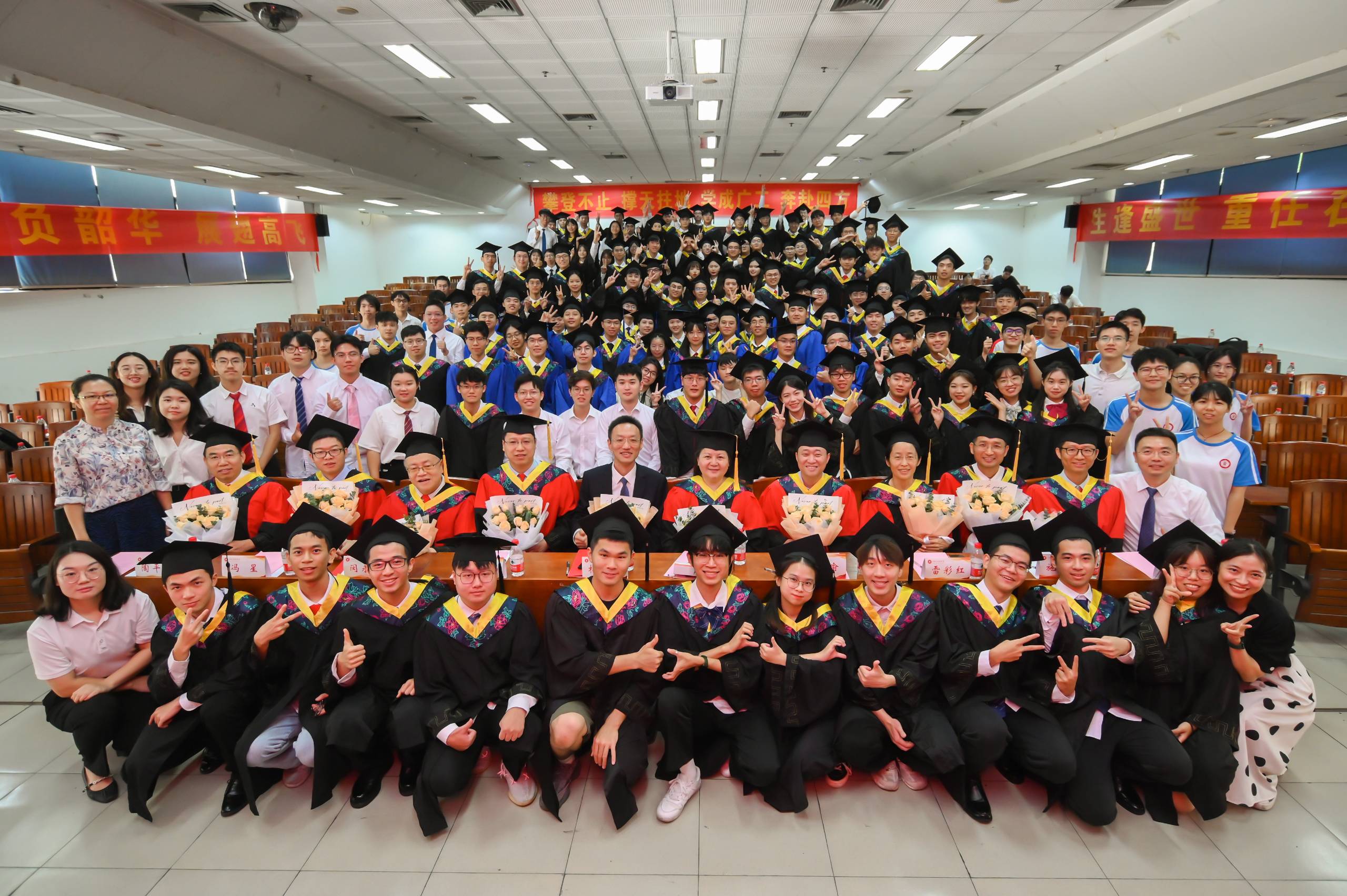 随后,学院 9位教师代表为全场2023届毕业生扶正流苏、授予学位并合影留念,全场师生共同见证了毕业生学有所成的重要时刻。