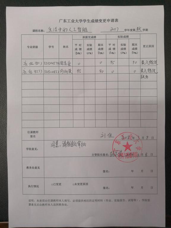 根据《广东工业大学理论课程考核管理办法》(广工大教字【2007】15号)文件的相关规定,现就bw必威西汉姆联官方网站开设的《生活中的人工智能》(2017-2018-1学期)学生成绩变更事项予以公示。 公示时间:2018年3月8日至2018年3月12日 如有异议,请署名书面反映到学院教务办公室,不接受匿名投诉。