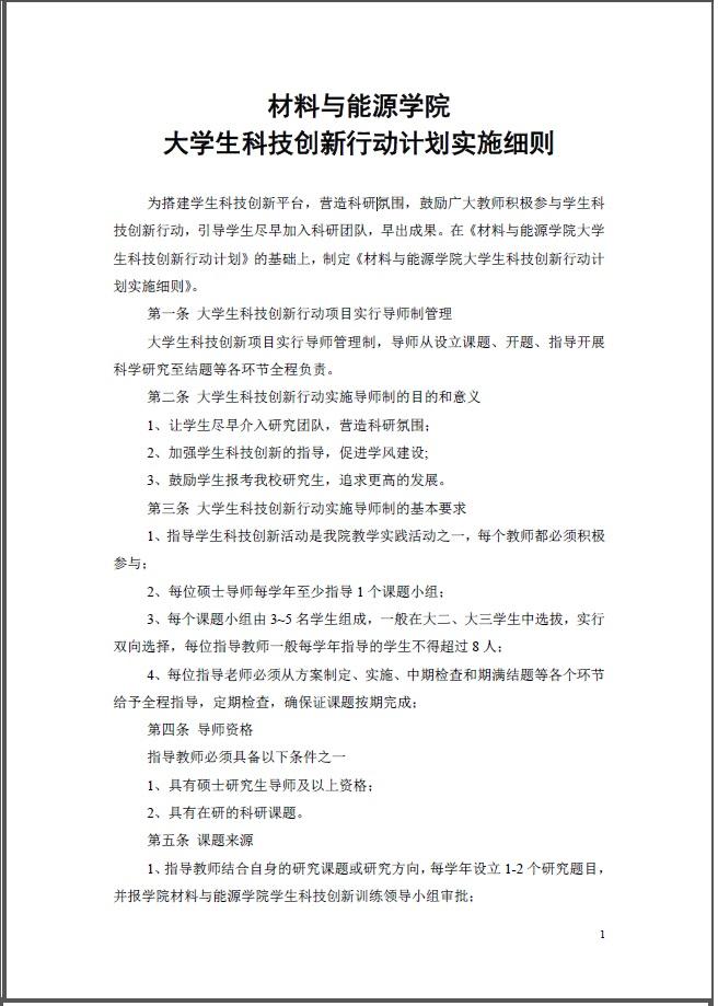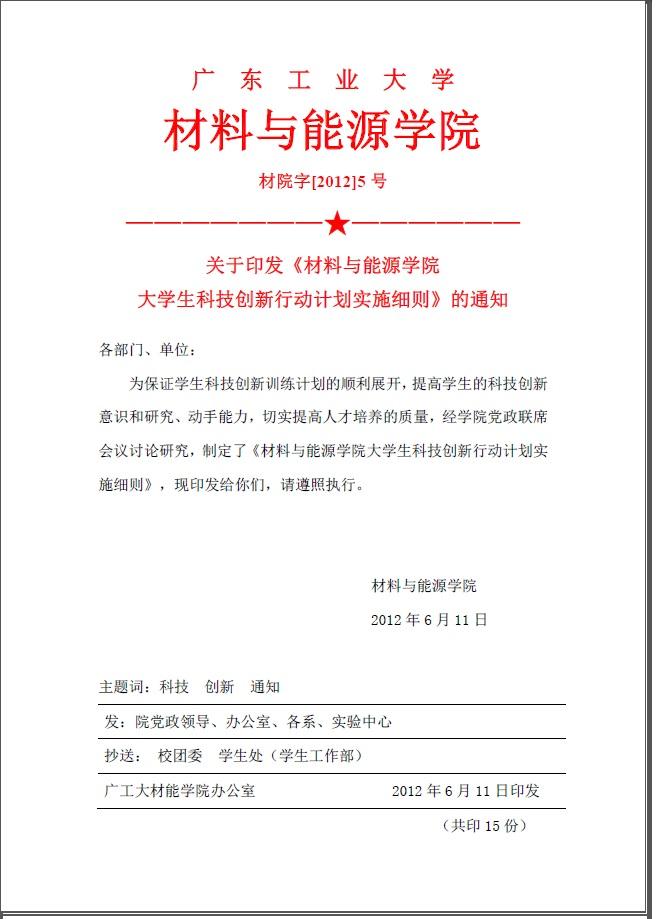 院字12年5号(关于印发《材料与能源学院大学生科技创新行动计划实施细则》的通知)
