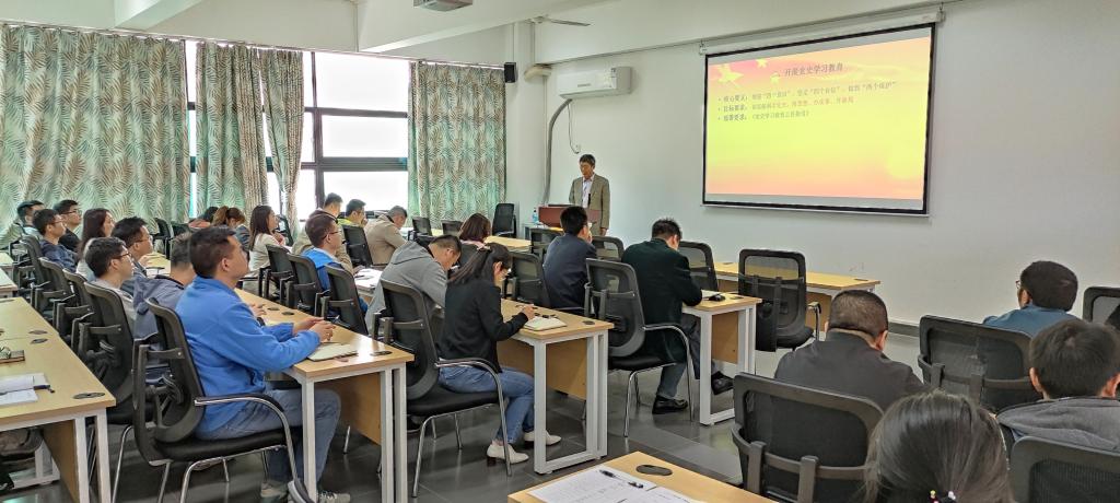 林军对学院新学期党建工作做了安排和布置,强调要配合省委巡视组做好巡视工作,传达了学校党史学习教育动员大会精神,结合《广东工业大学党史学习教育工作指引》的通知要求,重点对学院党史学习教育做了动员部署。对开展党史学习教育的重大意义、核心要义进行了深入解读;结合学习目标和部署要求,对党史学习教育的主要内容和学习进度提出具体要求;从专题学习、党史宣传阐释和研究、专题宣讲和培训、开展“我为群众办实事”活动等五个方面对学院党史学习教育做出具体安排。同时强调,开展党史学习教育,要深化对习近平新时代中国特色社会主义思想的理解,要增强“四个意识”、坚定“四个自信”、做到“两个维护”;要将党史学习教育与各项工作结合起来,严格做好党员发展工作,在工作中推进党建与业务双促进、双融合,强化样板支部的辐射带动,发挥党支部的战斗堡垒作用,持续做好党员示范岗、支部共建等党建品牌建设,提升支部党建活力,巩固基层党组织全面进步全面过硬成果。