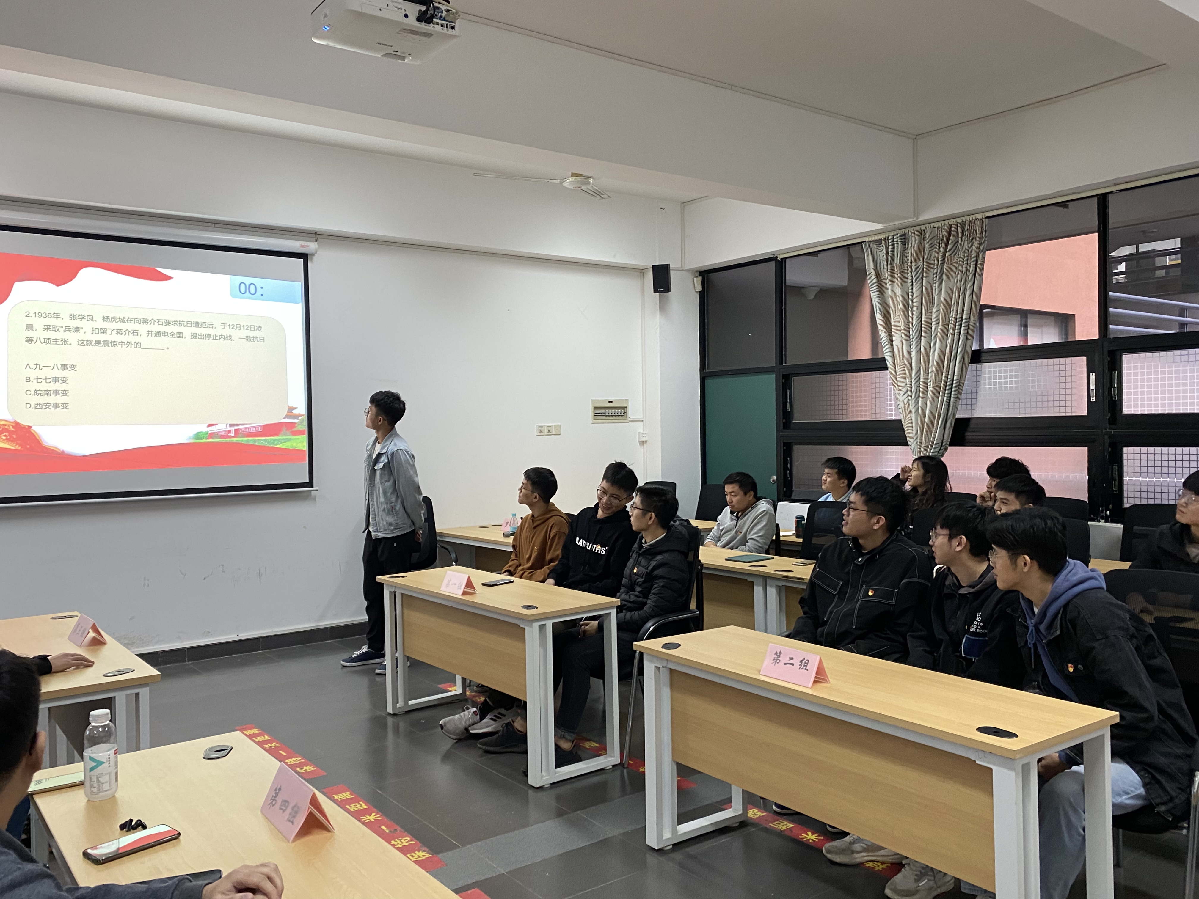 接着,为积极探索新形势下师生党支部共建的新形式、新路径,能源系教工-学生党支部以“学党史,跟党走,创佳绩”党史知识竞赛的形式开展本次共建活动。教师党员和学生党员组队参与竞赛答题,彼此间配合默契,分工明确,充分展现了扎实的理论素质与良好的精神风貌,现场气氛热烈。师生党员在激烈的竞赛中不仅学习巩固了党史知识,强化了师生之间的融合互动,也通过积极参与、通力协作提升了师生支部间的凝聚力。