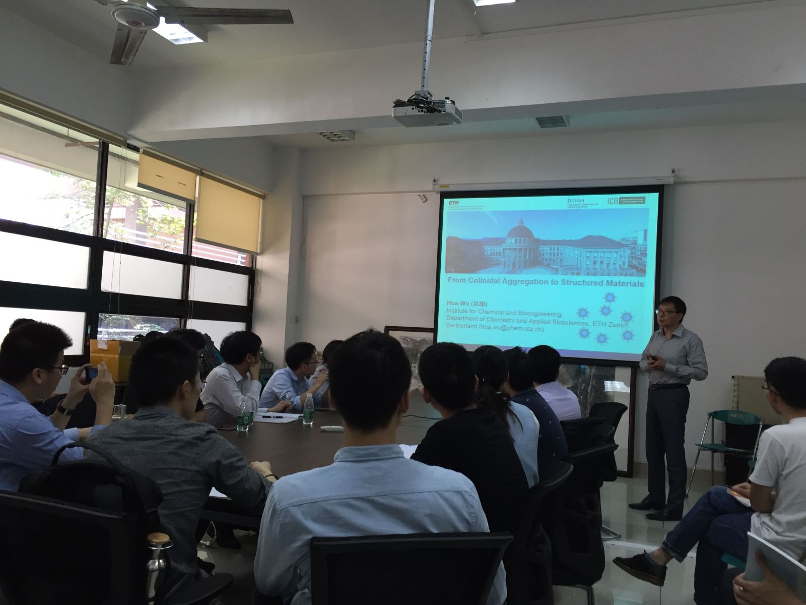 4月28日上午,瑞士联邦苏黎世理工学院(ETH)吴华教授应bw必威西汉姆联官方网站的邀请,在工学三号馆221室举办了一场“从聚合物胶体团聚到结构材料”的精彩报告,报告由陈颖教授主持,现场有来自华南理工大学化学与化工学院张心亚研究员和研究生,以及我校材能、轻化学院的老师和同学们。