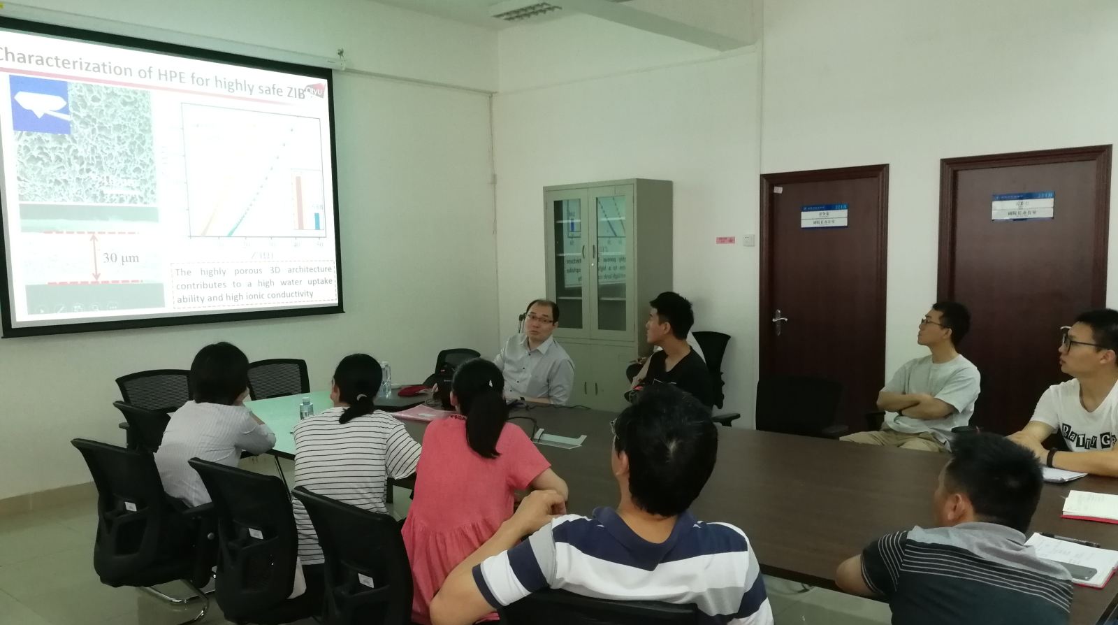 讲座中,支春义教授对自己的研究方向和动态做了介绍。支春义教授的研究兴趣有可穿戴储能器件&传感器、BN/BCN纳米结构和聚合物复合材料等,迄今已在Nature Commun,ACS Nano 和Adv. Mater. 等期刊发表超过180篇学术论文,被引用次数超过9000次。本次讲座主要内容也围绕着功能化柔性可穿戴的储能器件,以及储能零件的广阔应用前景展开。部分老师、研究生同学对感兴趣的内容同支春义教授进行了交流,支教授也从不同的角度给予了全面的回答。