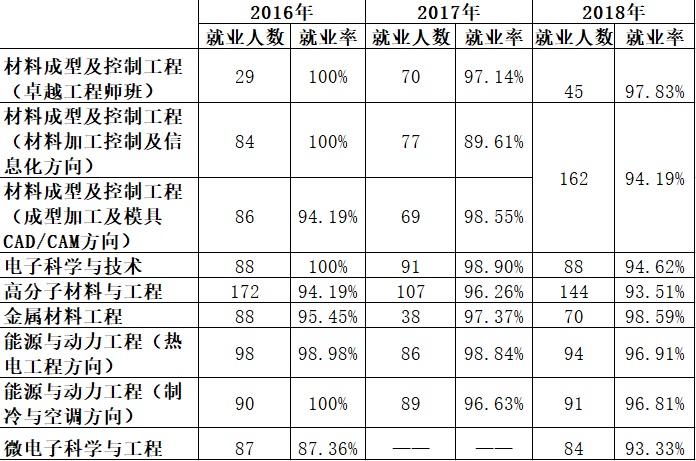材料与能源学院各专业近三年就业率统计